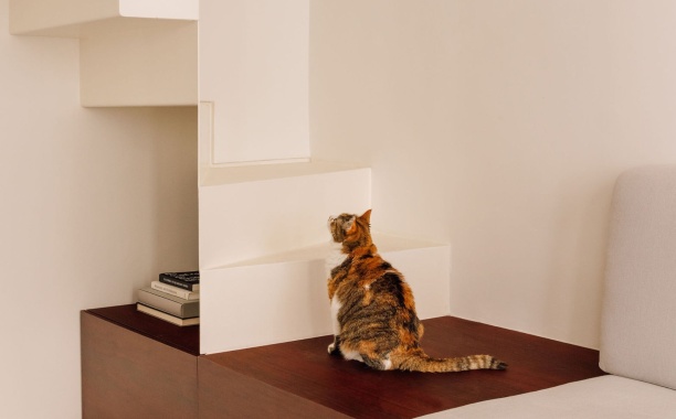 O apartamento AR é um duplex situado num edifício dos anos 60, localizado no bairro de Campo de Ourique, em Lisboa. Os clientes, que passam parte do tempo no campo numa casa espaçosa, queriam um apartamento na cidade que oferecesse o conforto necessário para as suas estadias urbanas, tanto para eles como para a sua gata, Alice.