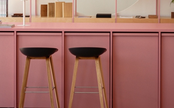 Neste projeto, o termolaminado cor-de-rosa da marca Egger foi utilizado para revestir o mobiliário, conferindo-lhe destaque e personalidade. Esta escolha deliberada trouxe uma nota de irreverência e originalidade ao design dos móveis, destacando-os como elementos distintivos e cativantes no espaço. A tonalidade vibrante deste termolaminado adiciona uma dose de frescura e dinamismo ao ambiente, tornando-o verdadeiramente único e memorável.