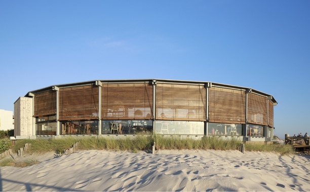 O Bar Sétimo afirmar-se pelo seu desenho anelar que protege os seus utilizadores dos ventos predominantes a norte na esplanada aberta a sul, ao mesmo tempo que mitiga o seu impacto fazendo coincidir o interior vazio do anel com um dos pontos mais altos da duna. A planta circular está associada desde há séculos à ideia de unidade e harmonia, ou ainda eternidade, promovendo a continuidade espacial. O projeto, inspirado nos antigos palheiros de madeira tão característicos da região, adota uma abordagem construtiva leve e amovível, utilizando estacas de madeira como suporte e estrutura reticular elevada feita com vigas e pilares de madeira lamelada.Os materiais