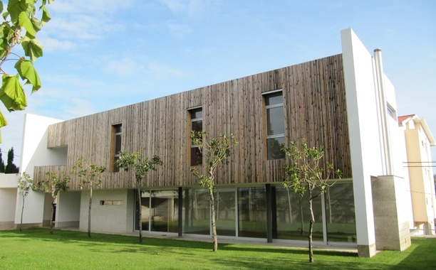 Localizado em São Pedro Fins, na Maia, o projeto arquitetónico concebido pelo arquiteto António Eurico Moreira e Silva destaca-se pelo uso inovador da madeira modificada Lunawood na sua fachada. Este revestimento de fachada sobressai pela sua elegância e pela integração com o ambiente circundante, conferindo ao edifício um aspeto convidativo.Os materiais