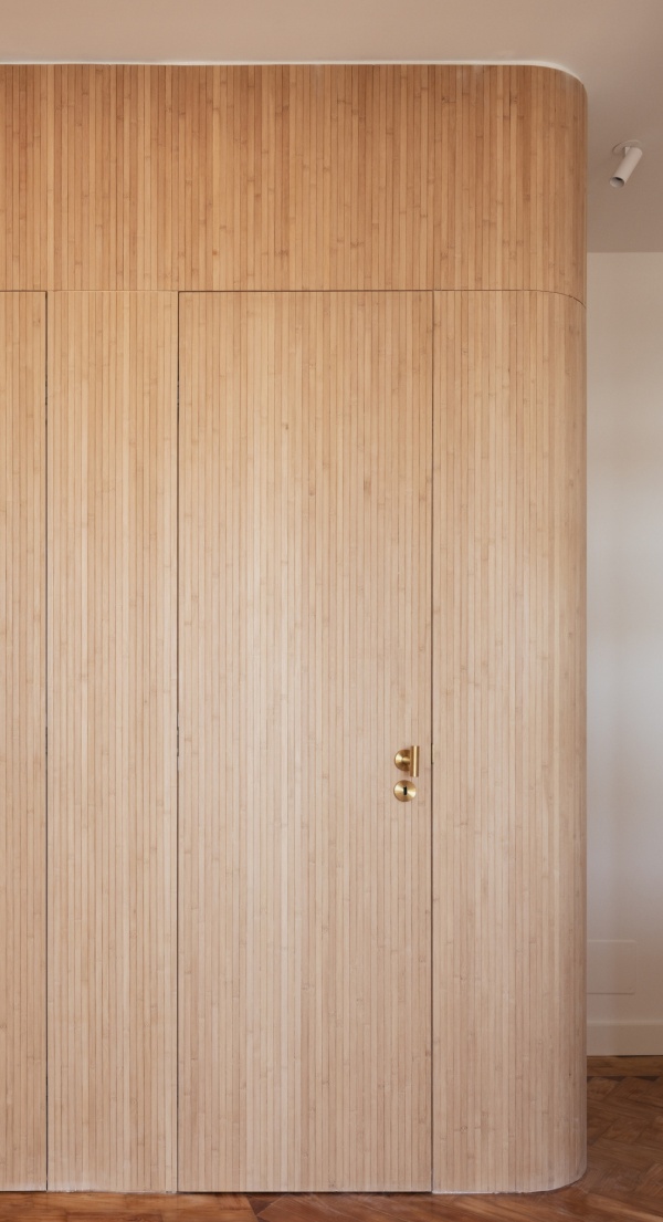 Este projeto destaca-se pela criação de um núcleo central revestido a bambu, que integra de forma discreta uma instalação sanitária e uma despensa. A casa foi alvo de alterações significativas, visando criar espaços mais amplos e fluidos. Foi dada uma atenção meticulosa aos detalhes, desde a seleção dos materiais até à disposição dos elementos. O uso de formas e arestas curvas acrescenta uma estética única e convidativa, tornando cada ambiente mais acolhedor e atrativo.