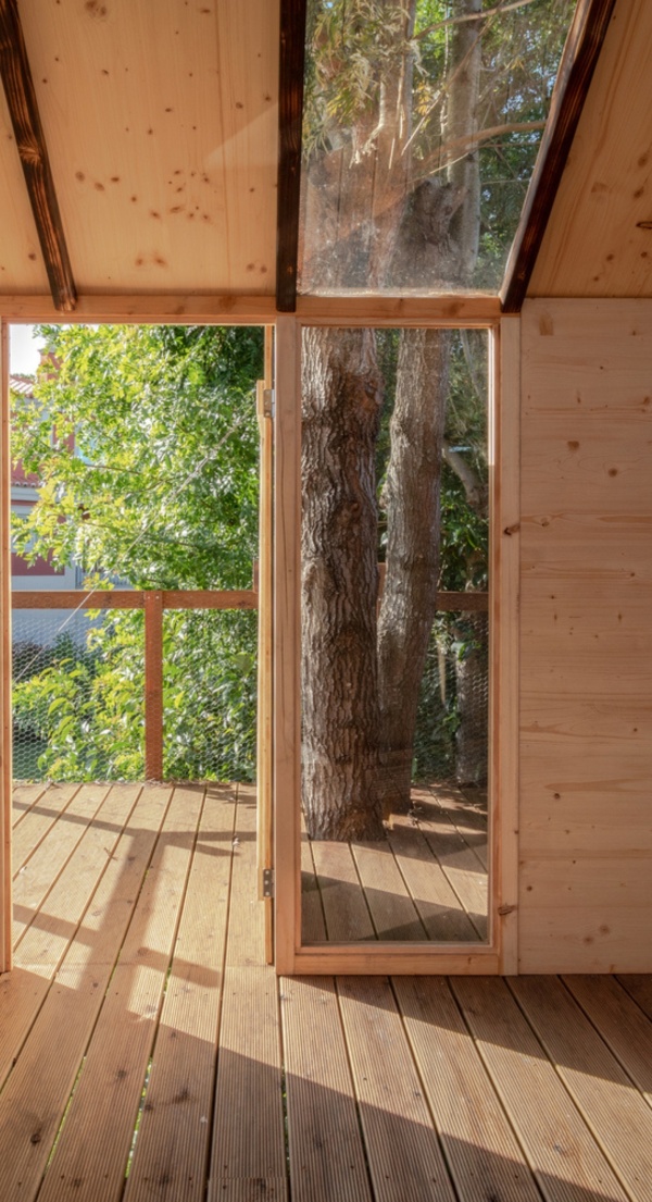 Recordando a sua infância, entre a natureza, árvores e amigos, esta casa na árvore foi desenhada para um avô que a quis oferecer aos seus netos. Um espaço simples, familiar e fácil de habitar, que contraria as tendências tecnológicas a que as crianças estão cada vez mais habituadas.