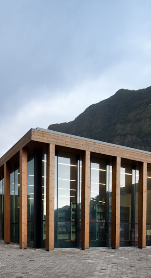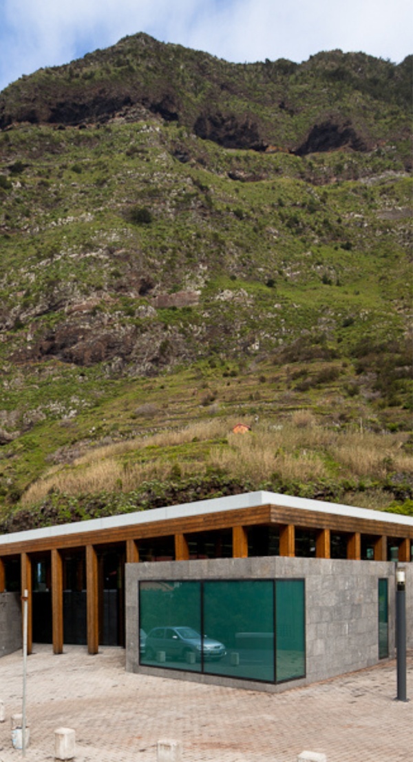 Toda a envolvente é dominada pela paisagem de montanha e por uma orografia pujante. Junto a uma margem da ribeira que corre no vale, numa faixa de terreno que teria sido também leito de ribeira, encontra-se a Conservatória de S. Vicente. Este edifício que possui uma forma retangular marcada por colunas e cobertura plana revestidas a madeira, foi implantado no mesmo espaço onde se encontram outras construções, uns blocos revestidos a pedra. Por estarem no mesmo lugar em simultâneo, a nova e as antigas construções atravessam-se e intercetam-se, partilhando o mesmo espaço. A conservatória tem as paredes em vidro recuadas face ao alinhamento dos pilares de madeira, formando um único espaço interior. A transparência e a ligeireza da fachada permitem ver através do edifício deixando a natureza entrar por todos os lados.Os materiais