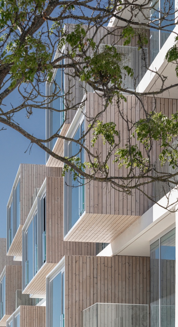 Para o edifício do Alboi, situado em Aveiro, o arquiteto Ricardo Vieira de Melo escolheu a madeira modificada Lunawood como solução, atendendo às exigências formais, construtivas e geográficas do projeto, além de valorizar a sua leveza, durabilidade e estética.
