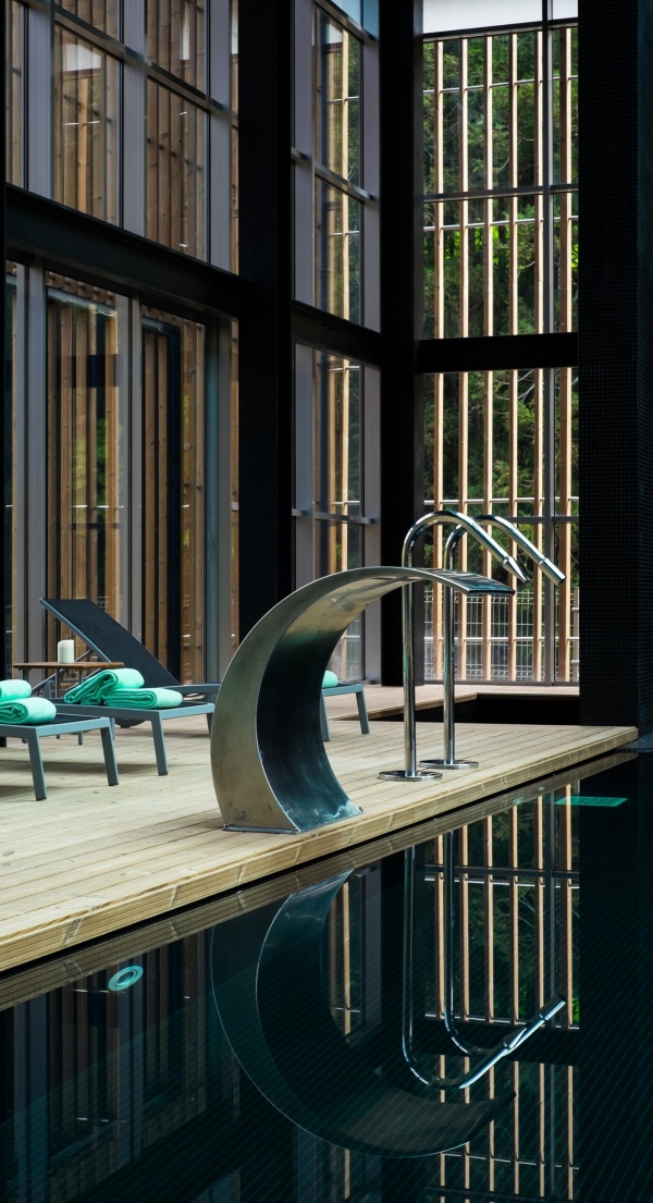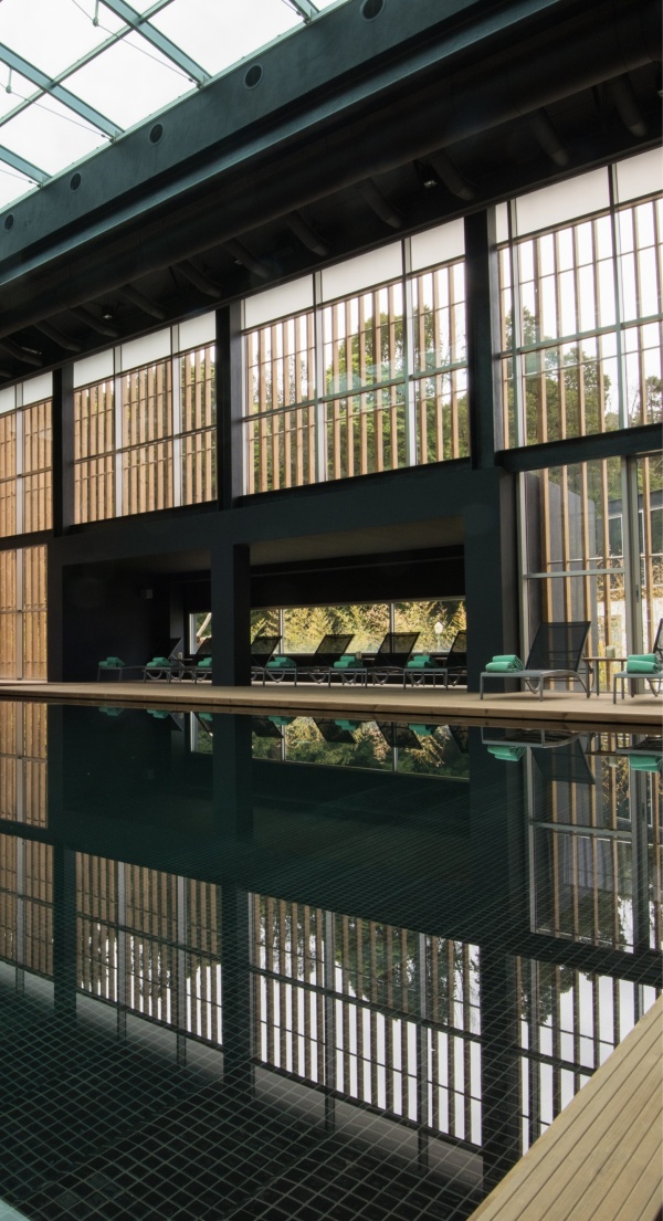 Neste projeto, a madeira Lunawood foi propositadamente incorporada na zona do spa e piscina exterior, destacando-se como um elemento essencial que reforça a ligação com a natureza circundante. Esta escolha de material não só contribui para o equilíbrio entre o interior e o exterior, mas também adiciona uma sensação de calor e conforto ao ambiente. Com a sua textura natural e tonalidades suaves, a madeira Lunawood proporciona uma atmosfera relaxante e convidativa, enriquecendo a experiência dos utilizadores no spa.