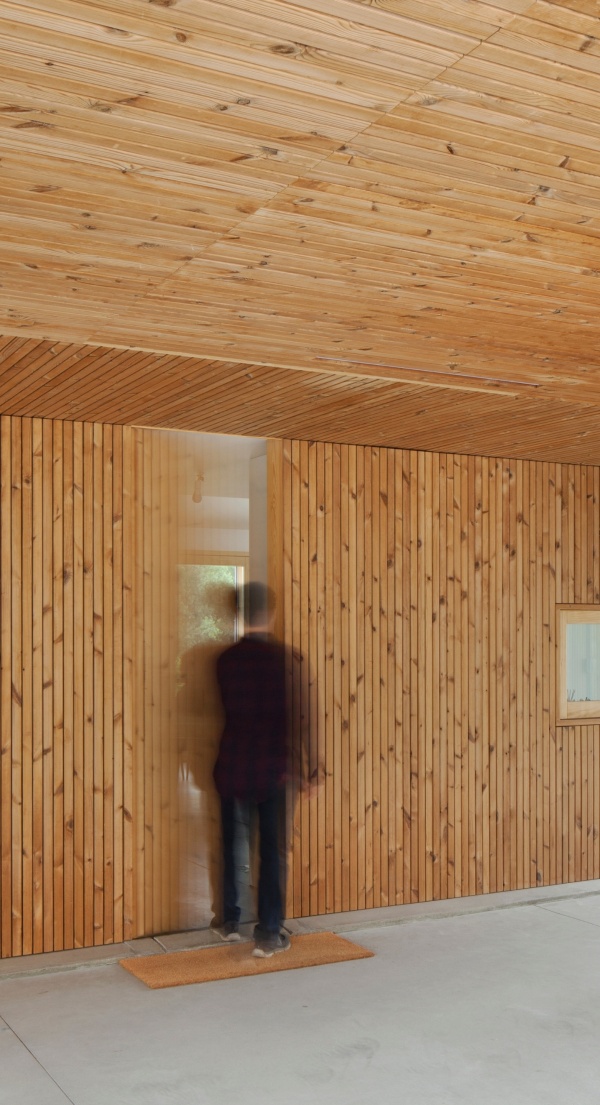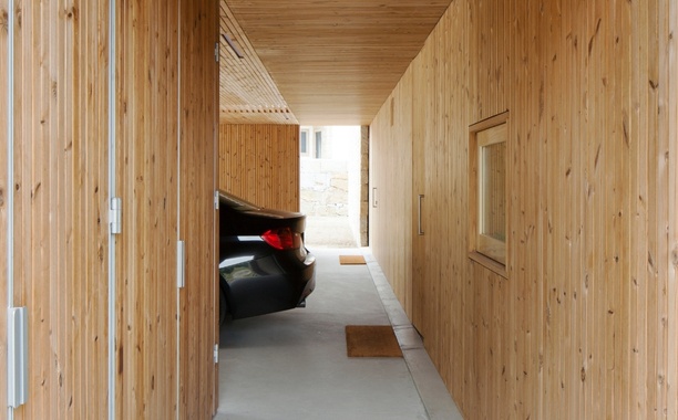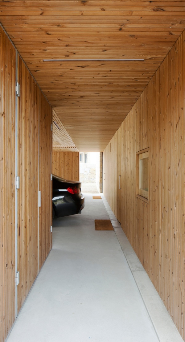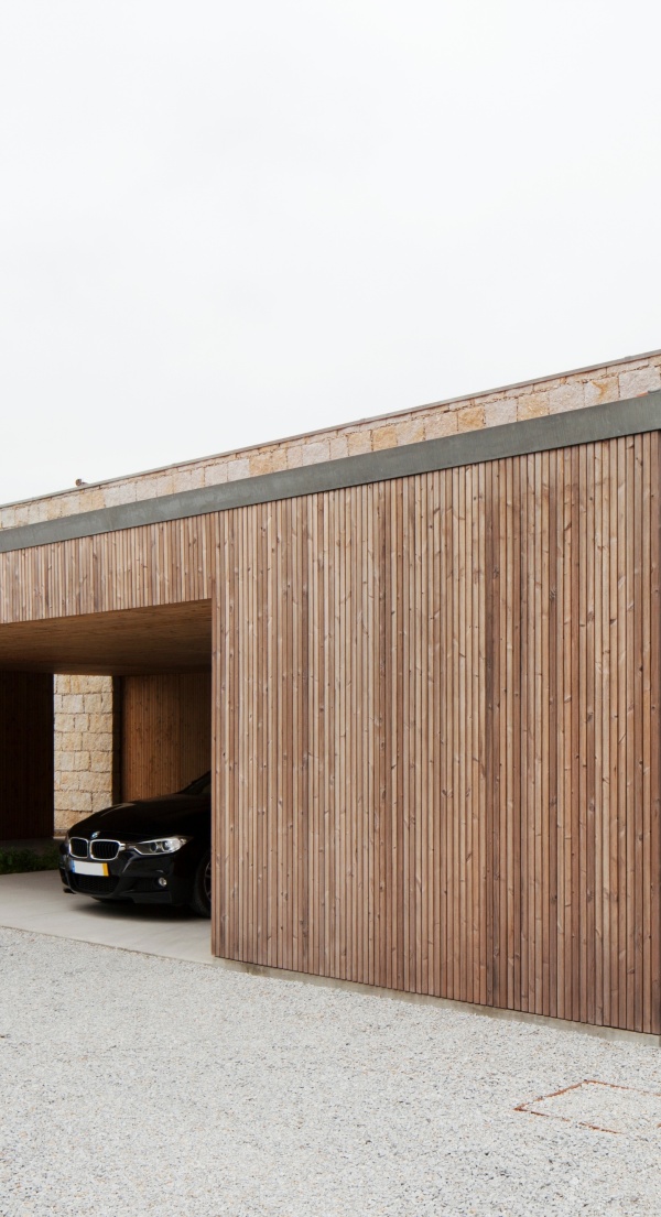O edifício organiza-se em dois volumes que se diferenciam pela inclinação e altimetria da cobertura, conectados entre si, cujo volume mais baixo, voltado para Norte, é desmaterializado para permitir o abrigo automóvel e o abrigo de entrada na habitação. Os materiais selecionados para a fachada, revestimentos de parede e tetos foram a madeira Lunawood, reconhecida pela sua durabilidade e apelo estético. Quanto às caixilharias, optou-se pela utilização de Accoya, uma madeira modificada com uma durabilidade incomparável.