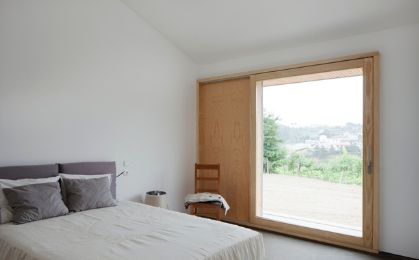 O acesso à habitação é feito a partir do limite norte do terreno. Em termos de distribuição programática e funcional, foram três os princípios orientadores da proposta. O primeiro desses princípios foi a orientação solar, que condicionou a localização das áreas de serviço a Norte para permitir uma melhor exposição dos compartimentos habitáveis voltando-os para Sul. A Sul localiza-se também a paisagem visual que se pretendeu privilegiar, sendo essa a segunda condição orientadora da organização dos espaços e da localização dos vãos. O terceiro princípio organizador da proposta foi a separação das áreas íntimas da área social.Os materiais