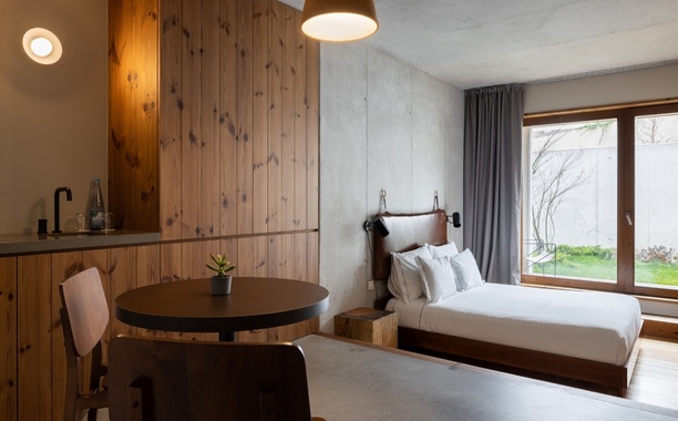 Os tons neutros e a decoração pontuada pelo aço, madeira e micro cimento trazem um toque industrial e criam um ambiente relaxado e uma atmosfera serena onde o descanso e música se unem. A bela e uniforme tonalidade mel da madeira Lunawood, aplicada nos tetos, paredes, portas e janelas, traz a natureza para este espaço urbano, estabelecendo uma ligação com o ambiente circundante e envolvendo os hóspedes numa atmosfera de beleza natural e acolhedora.