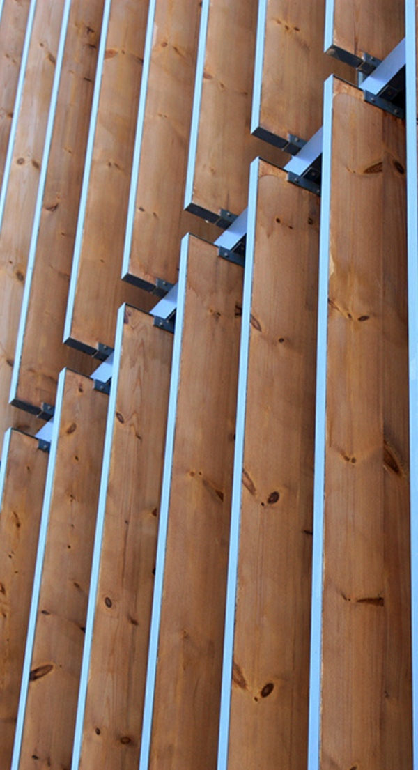 "Dada a diversidade de revestimentos nos edifícios envolventes, a madeira Lunawood permite, pelo seu carácter natural e neutro, integrar-se no local (pela proximidade ao jardim) como também concede ao edifício uma imagem quente e acolhedora."