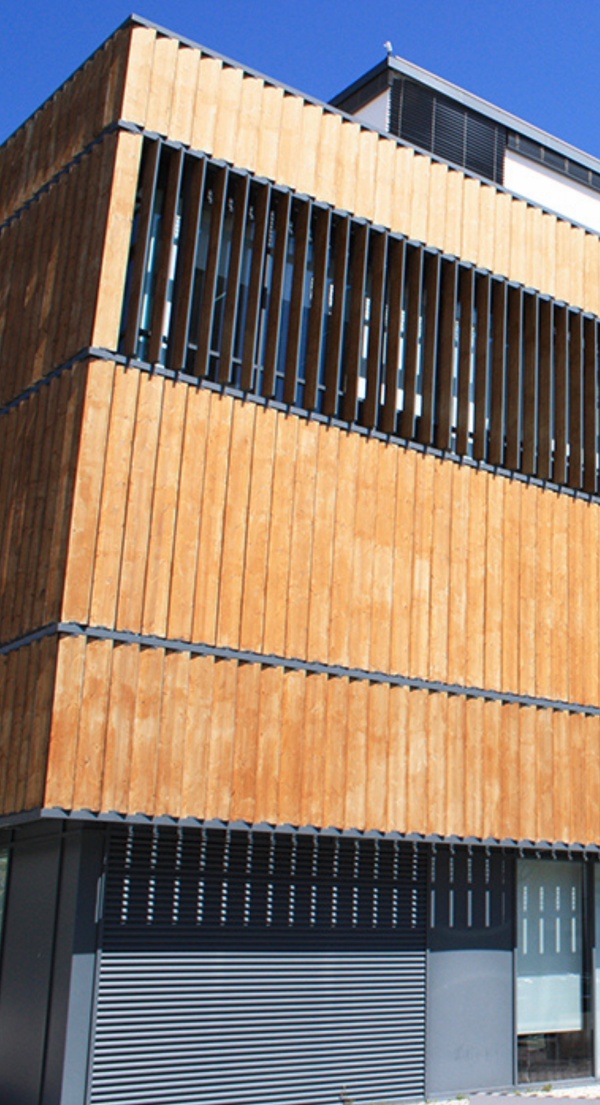 A escolha da madeira modificada Lunawood para revestir a fachada deste edifício foi influenciada pela sua capacidade única de se integrar perfeitamente no ambiente circundante. Dada a diversidade de revestimentos presentes nos edifícios adjacentes, a Lunawood destaca-se pelo seu carácter natural e neutro, permitindo que o edifício se harmonize com a paisagem, especialmente pela sua proximidade ao jardim. Além disso, a Lunawood confere ao edifício uma imagem calorosa e acolhedora, adicionando um toque de elegância e sofisticação ao mesmo tempo.