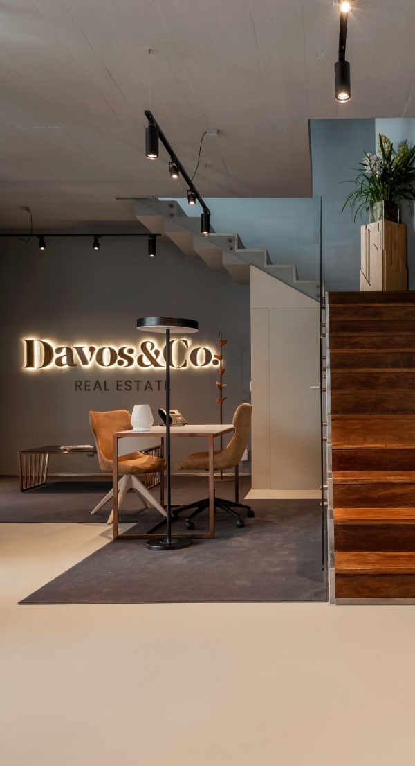 Descubra o Showroom Davos Real no Porto, um espaço versátil e inspirador, onde cores suaves e uma estética luxuosa se conjugam harmoniosamente, servindo como local de trabalho e galeria, refletindo a identidade do cliente e promovendo uma atmosfera criativa.